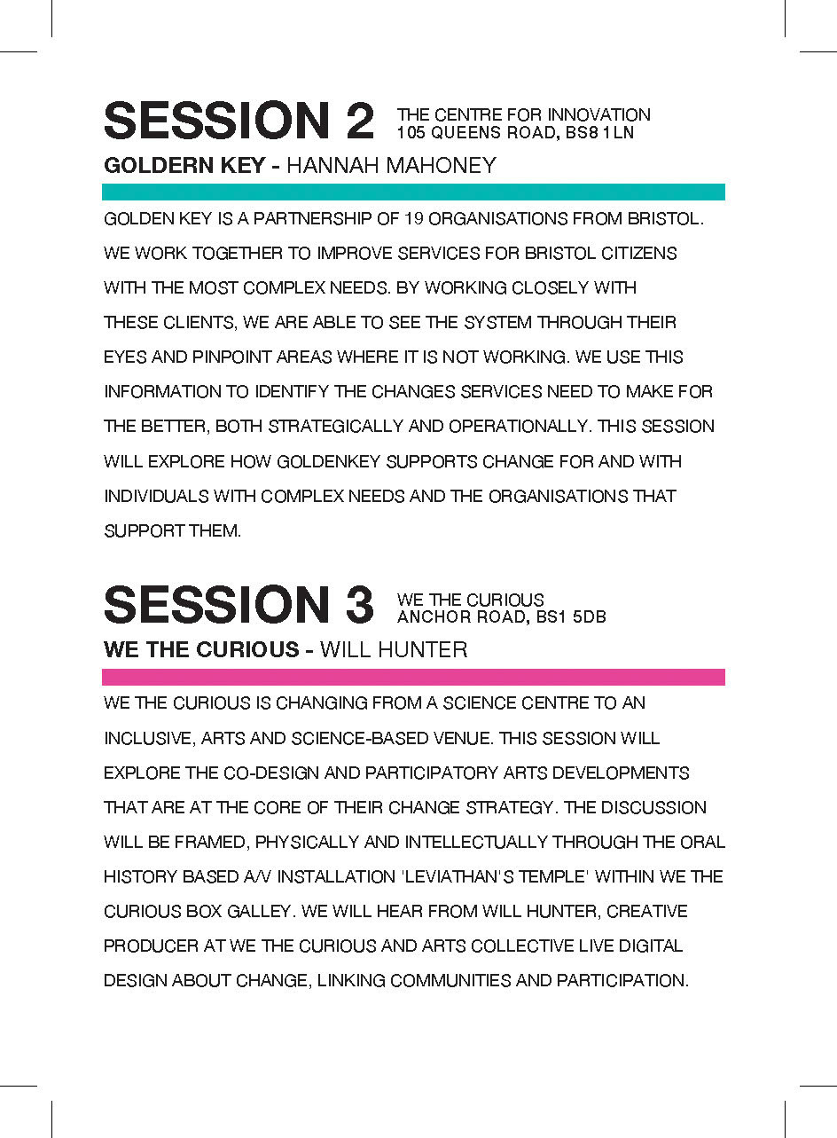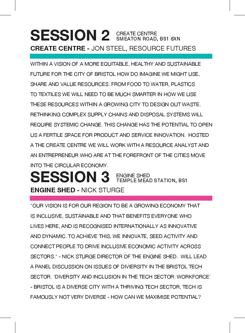 The conference was delivered through a series of talks and workshops hosted in venues across Bristol, developed in partnership with: Rolls-Royce, We The Curious, Golden Key, Engine Shed, Hope International, Create Centre, Industry of Us, and Munday & Anson.