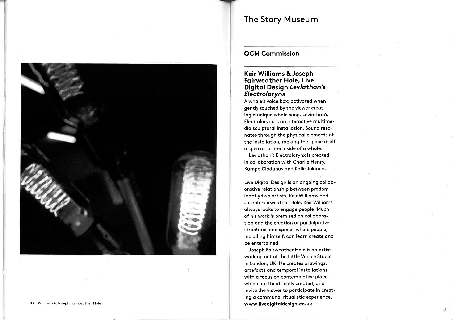 The work was developed in collaboration with scenographer Joe Fairweather-Hole and composer Charlie Henry, with technical support from Kumpul Clodahus and Kalle Jokinen. It was installed for two weeks inside an old post office vault at the Oxford Story Museum as part of the Audiograft Festival.