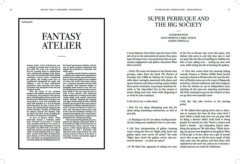 The programme explored live art, publishing, performance and institutional critique through accessible, hands-on activities. An interview reflecting on our approach was published in the ICA’s Roland magazine, conducted by artist Louis Moreno (Urban Laboratory)