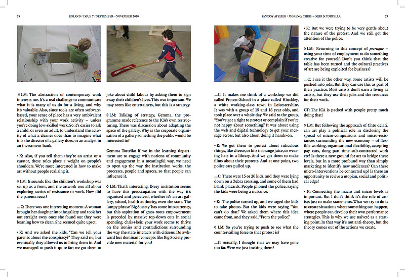 In 2009 chris+keir were invited by the ICA to curate and deliver a year-long programme of live art workshops for children, developed in direct response to the gallery’s exhibition programme.