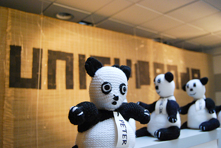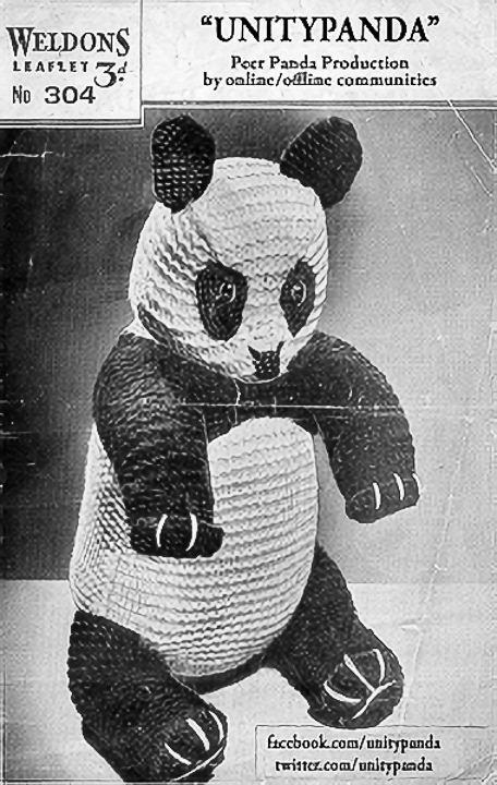 Launched in April 2010 at Coventry Artspace and venues nationwide, Unity Panda invited members of the public to contribute by knitting individual parts of a panda using a 1946 pattern originally created to commemorate “Miss Unity Panda,” gifted to London Zoo. Participants could knit as much or as little as they wished, from simple ears to more complex limbs, or contribute through stuffing, sewing, and finishing the pandas. The emphasis was on collective effort rather than individual authorship.