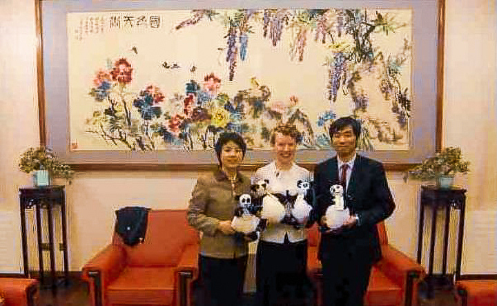 The resulting knitted pandas toured as an interactive exhibition across the UK during 2010–11. In 2012, the project extended internationally when the Chinese Embassy invited Jonnet Middleton to present the pandas in Beijing, completing the project’s cultural exchange loop.